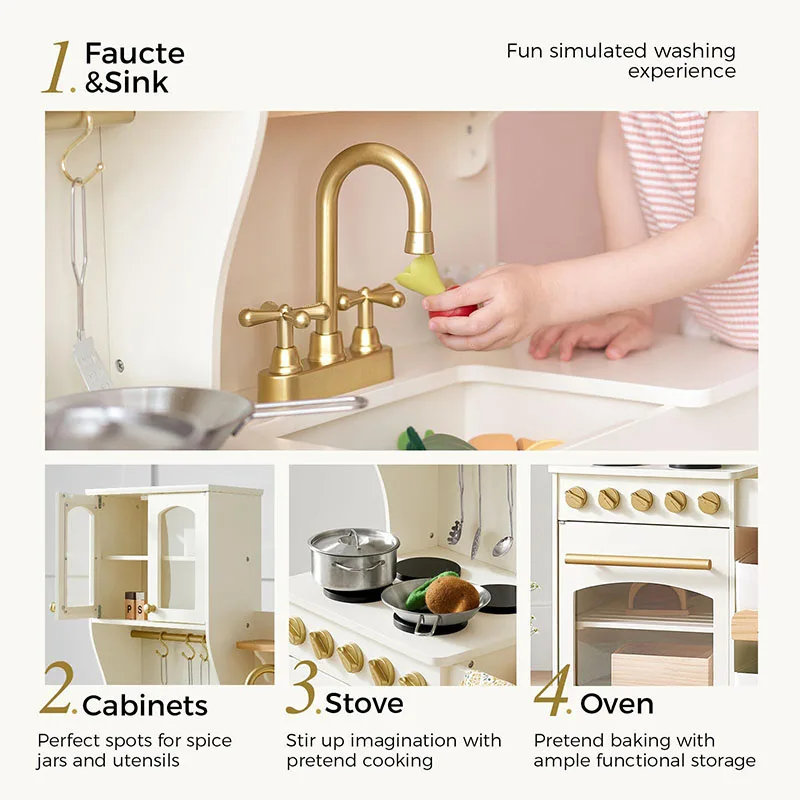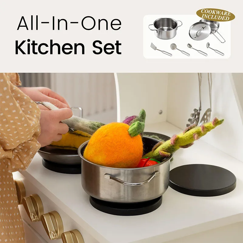 EDULAND Wooden Kitchen Food Toys Children's Pretend Play Kids' Kitchen Toy Sets for Toddler Baby Wooden Cooking Toys